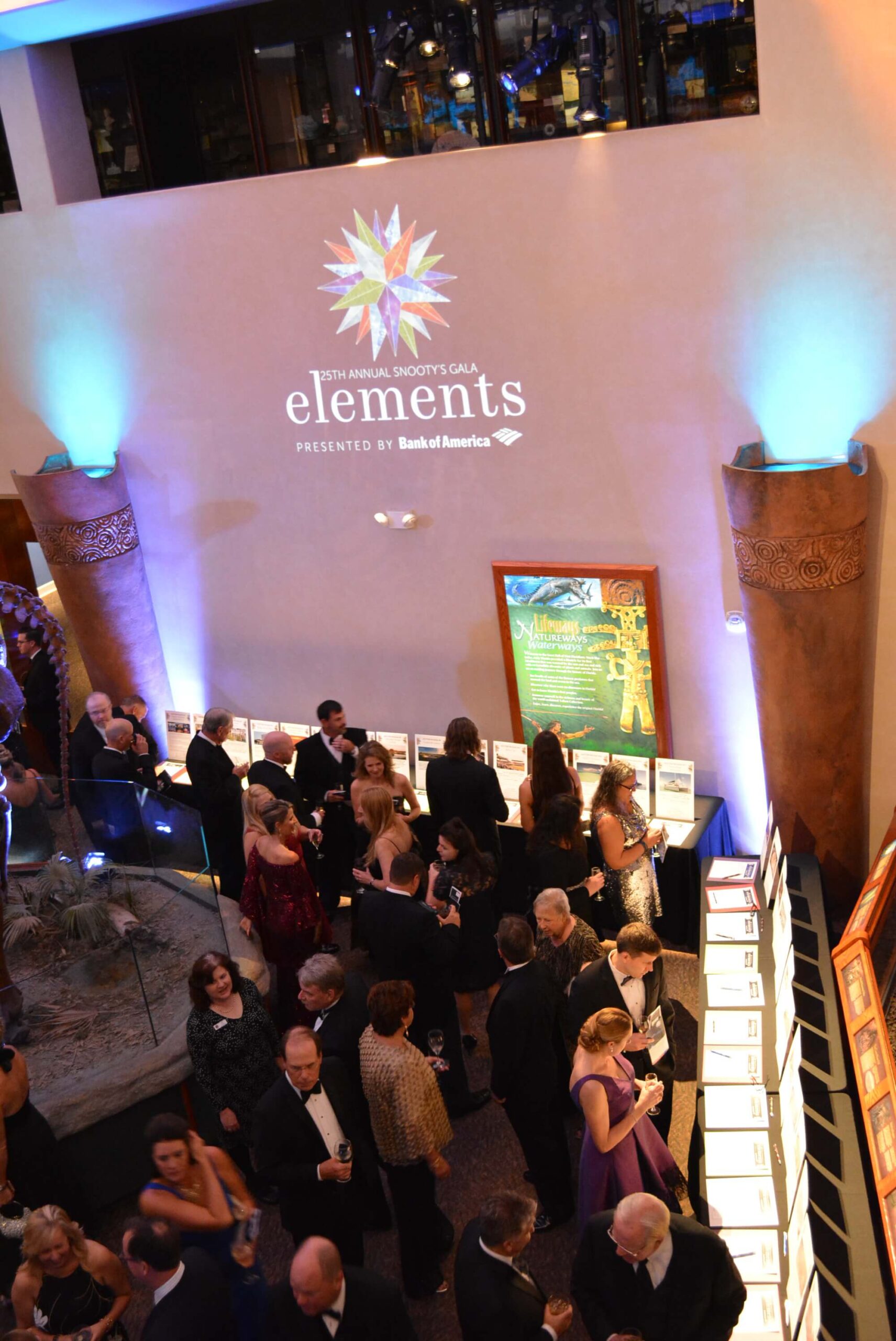 The selection of this year’s theme – “elements” – reflected the notion the five core scientific elements: earth, air, fire, water and ether. Just as all of these elements are found in our universe, they are also found here at the Museum – in the Collections, the Parker Manatee Rehabilitation Aquarium, the Bishop Planetarium and in the outdoor Spanish Courtyard. This is the case today and will be true to an even greater extent with all the exciting plans the Museum has for the future.