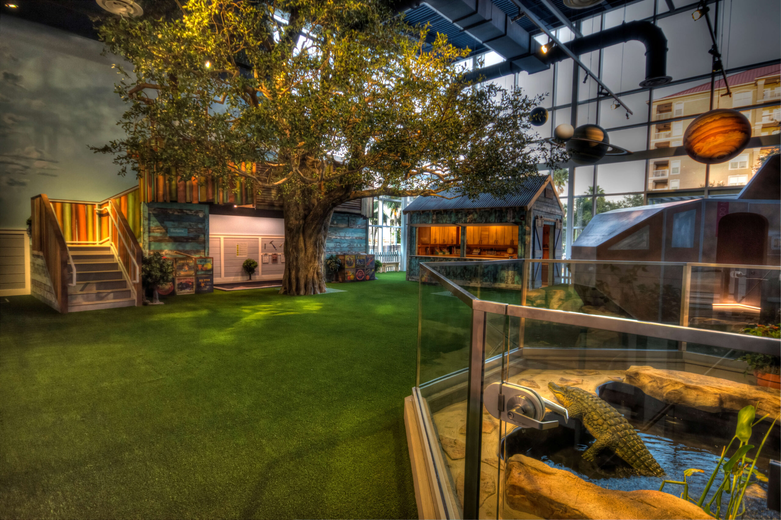 - Brilliant Creative Fabrication helped design and complete the exhibits within the Backyard (such as the Pond, the Cardboard Rocket, the scale model of the solar system, etc.) and NatureMaker Steel Art Trees hand-crafted the one-of-a-kind Mighty Oak that is the centerpiece of the Backyard.