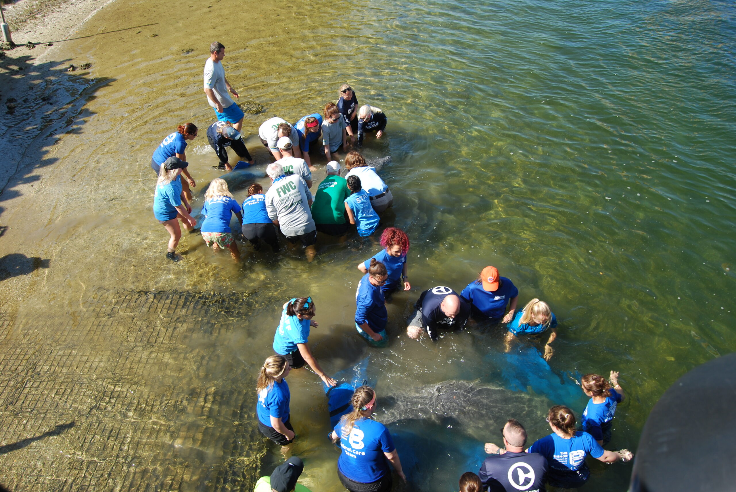 Bradenton, Fla., February 2023 – The Bishop Museum of Science and Nature announced today that on Friday, February 17, 2023, Animal Care staff from The Parker Manatee Rehabilitation Habitat located at The Bishop successfully returned three female manatees to the wild. The manatees were in second stage rehabilitation after initially being rescued and medically treated for cold stress syndrome.